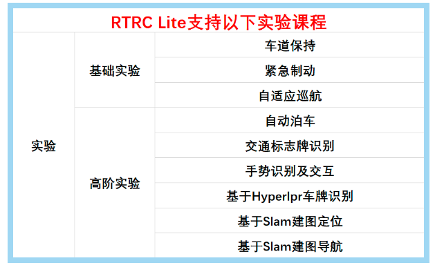 智能网联车技术发展的各个阶段需要适配不同方案的智能交通沙盘,各个院校的建设场地也存在差异性,因此,乐知行提供满足不同需求的智能交通沙盘定制化服务。针对单车智能与车路协同开发智能交通教育沙盘Lite版本,其主要功能可根据需求定制。智能交通教育沙盘Lite版本可支撑相关课程建设、科研项目和学生课外科研活动内容。能够给学生提供SLAM地图构建、室内定位、环境感知融合、车道识别、自适应巡航、紧急制动、自动泊车、视觉识别与检测、传感器融合定位、全局路径规划等功能的演示与验证平台。